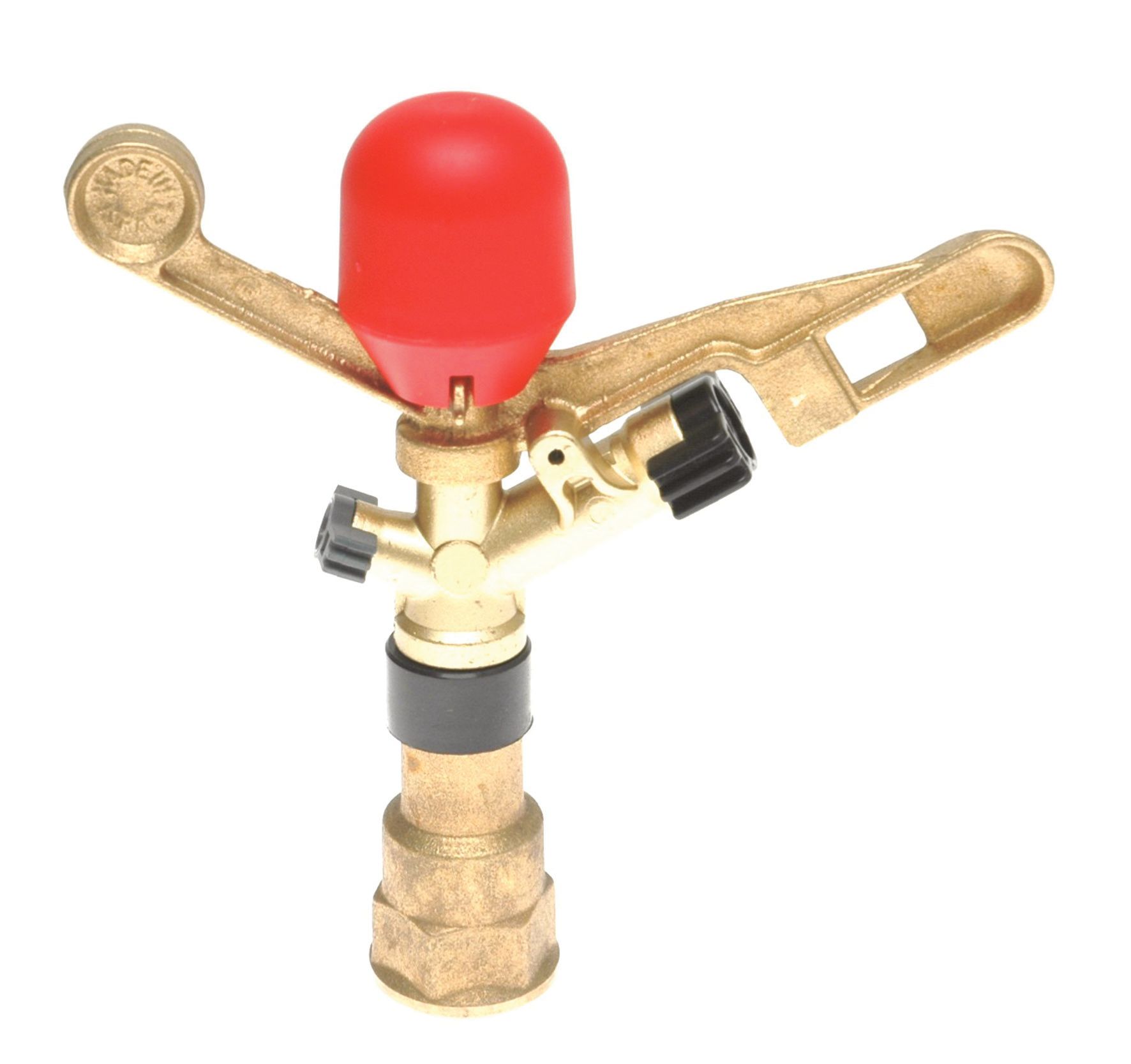 De Naan-sproeier 233 B is een messing sproeier die beschikt over 2 nozzels met een grote (gezamelijke) capaciteit en sproeidiameter. De grote nozzel gooit het water ver weg, de kleine nozzle dichtbij.
