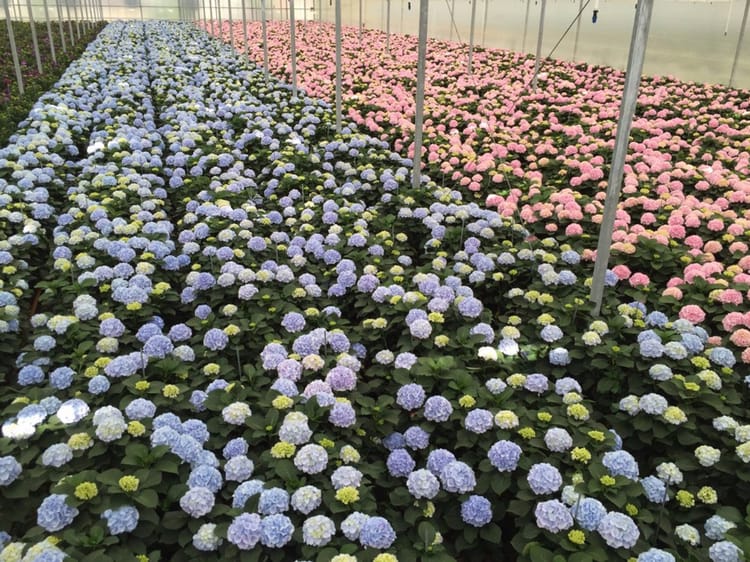 De snijhortensia, ook wel Hydrangea macrophylla genoemd, wordt ieder jaar populairder. Daarom groeit de laatste jaren het areaal van deze teelt. Er is nu circa 170 hectare, verdeeld over 160 bedrijven. Het aantal bedrijven wordt minder, maar het areaal per bedrijf wordt groter. De hortensia wordt voornamelijk op een grondmix geteeld, maar er is tegenwoordig een trend zichtbaar naar andere substraten, zoals perliet, steenwol en/of kokos. Deze afweging neemt de kweker gebaseerd op zijn ervaring of de manier waarop hij wil ‘blauwen’ (de hortensia’s blauw maken door middel van aluminiumsulfaat). De hortensia reageert heel precies op zijn watergift, want teveel of te weinig water kan zorgen voor kapot geklapte cellen of bloemverbranding. Een precisie-irrigatiesysteem is belangrijk en daarom is druppelbevloeiing hét perfecte irrigatiesysteem hiervoor. Netafim biedt deze mogelijkheid en blijft zelf innoveren door middel van kennisoverdracht, zodat uniformiteit en precisie op nummer één komen te staan.